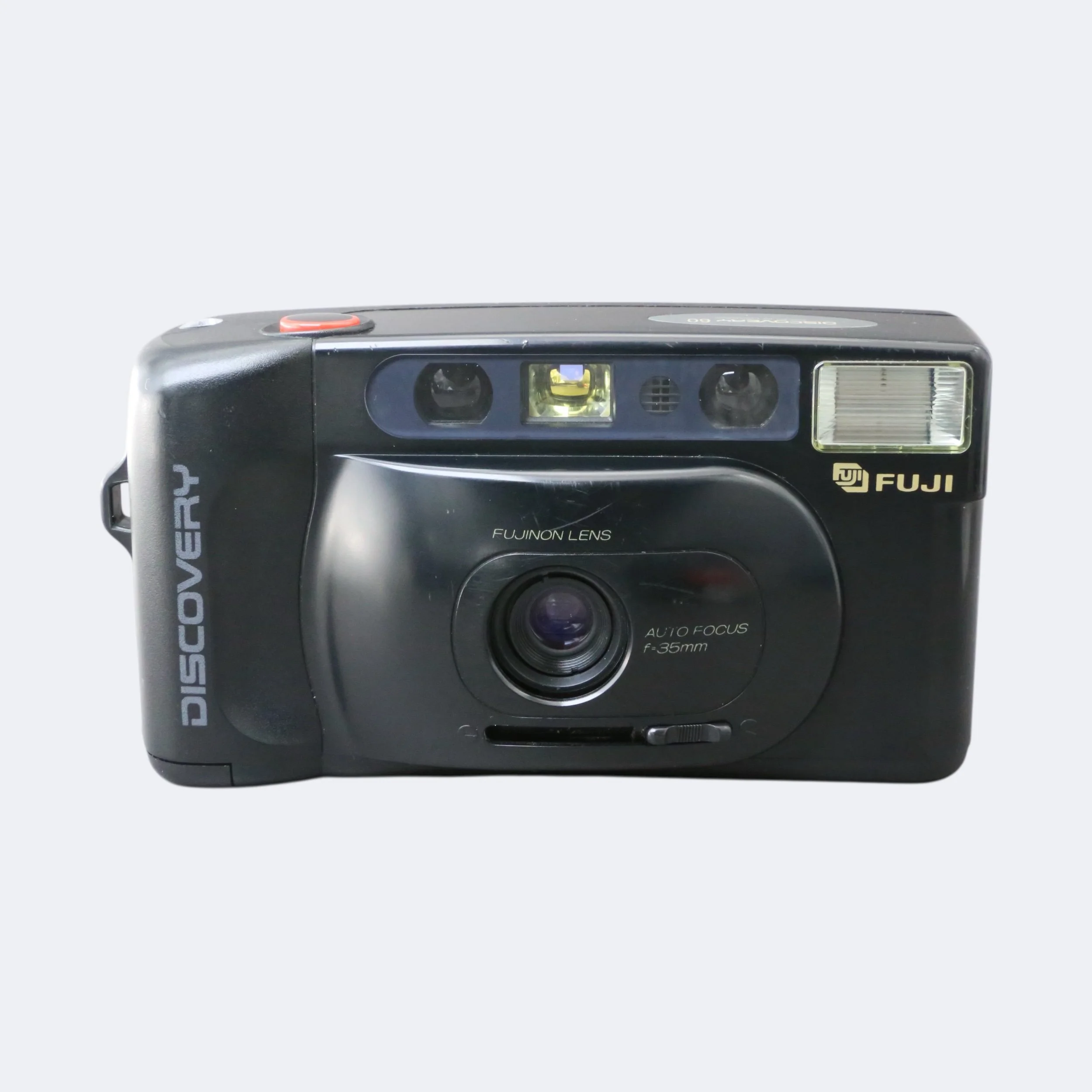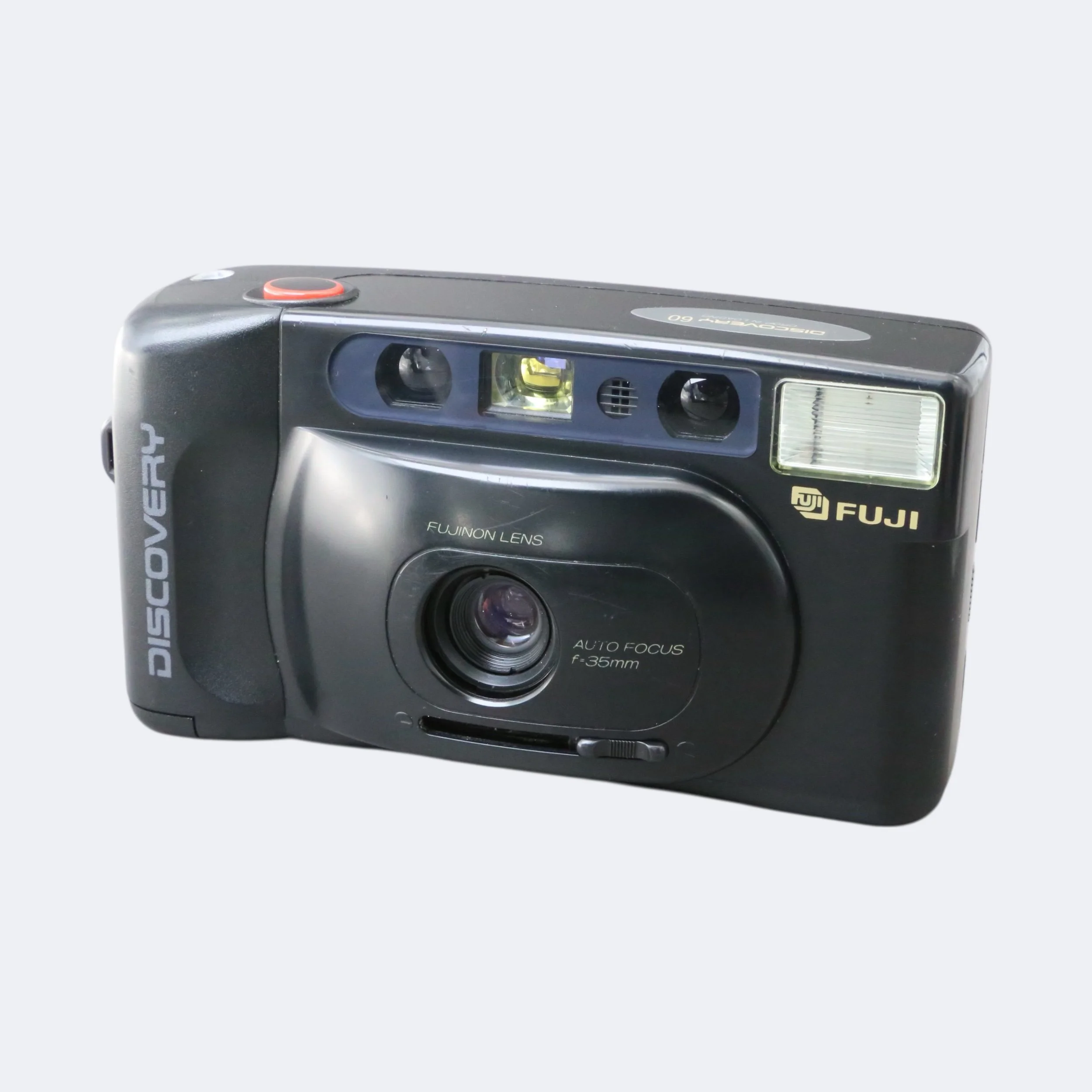 A compact and easy-to-use point-and-shoot from the early 1990s, the Fujifilm Discovery 60 offers simple automatic operation with a sharp fixed lens and built-in flash. Lightweight and reliable, it’s great for beginners or anyone wanting a straightforward film camera with classic Fuji rendering.