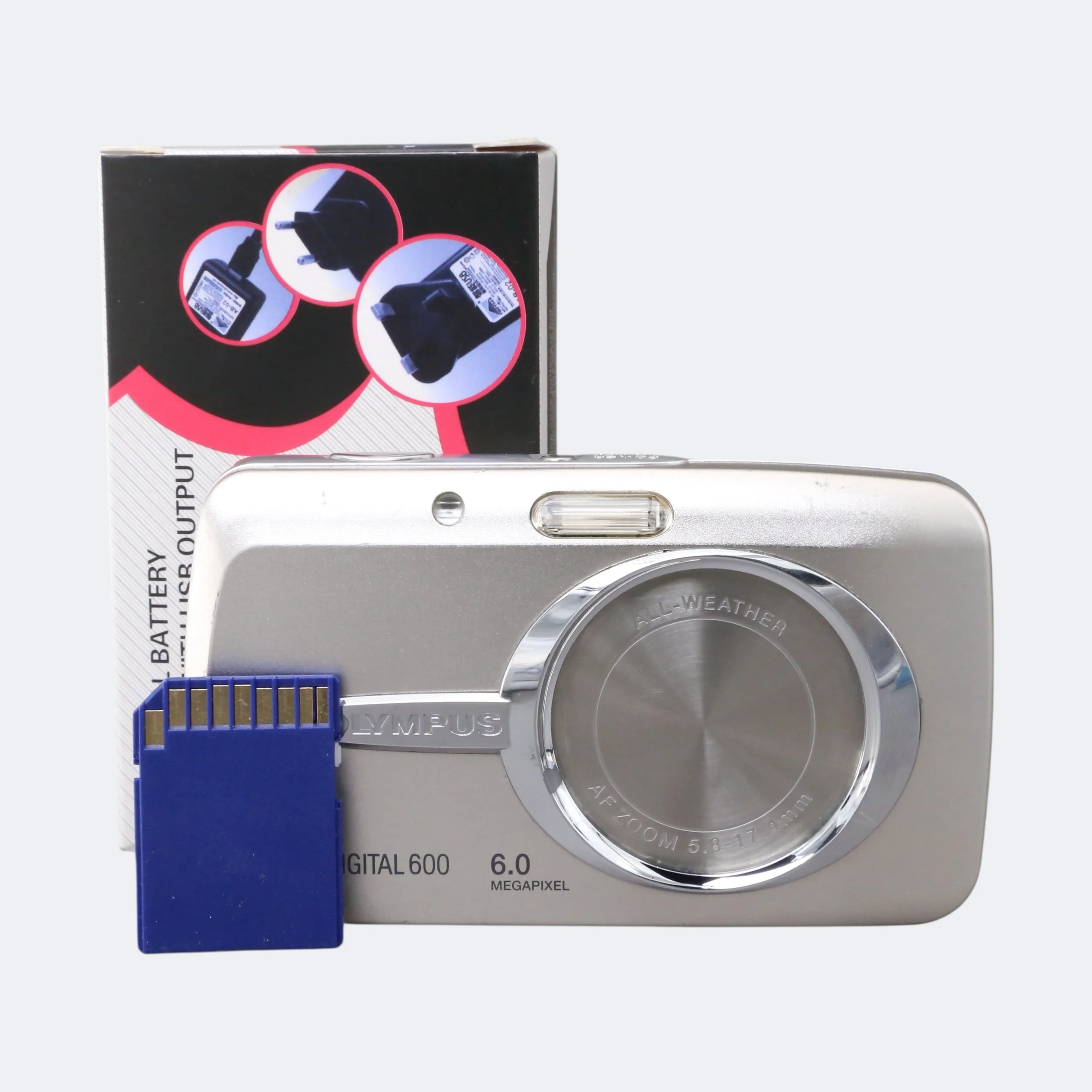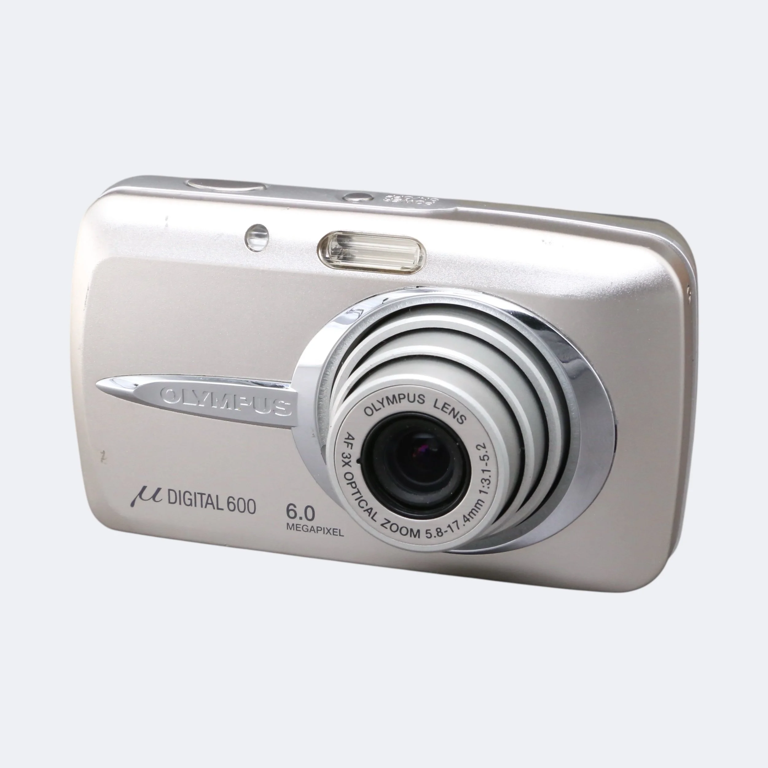 A compact digital from 2005, the Olympus Stylus 600 offers a 6MP sensor, 3× optical zoom, and weather-resistant body in a slim, pocketable design. Built for everyday use, it delivers sharp images with easy controls and Olympus’ classic “Stylus” durability.