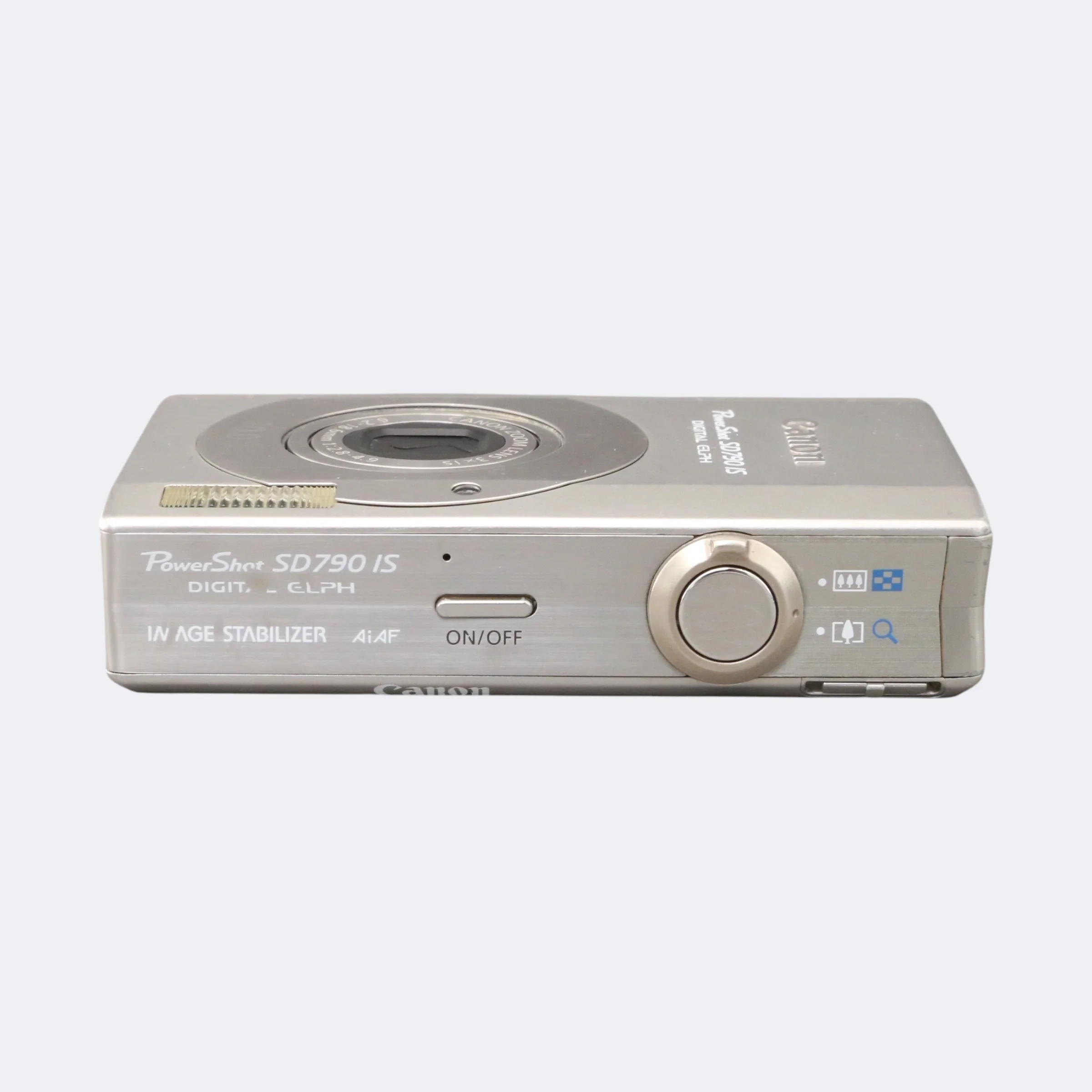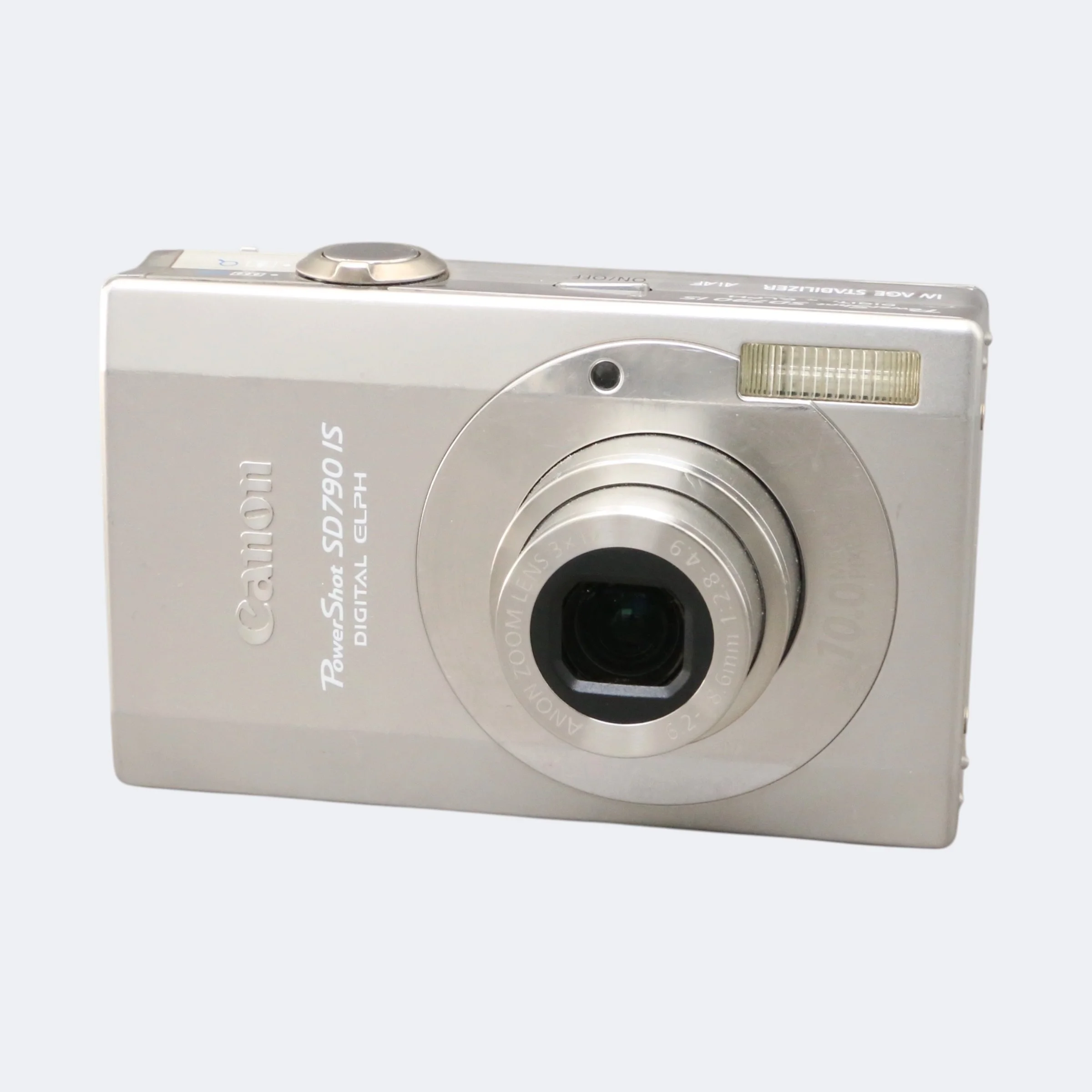 Compact late-2000s point-and-shoot with a premium metal build and classic Canon color rendering. The SD790 IS features a sharp CCD sensor, optical image stabilization, and a bright LCD in a slim, pocketable body. Great for everyday photos, travel, or vintage digital aesthetics.