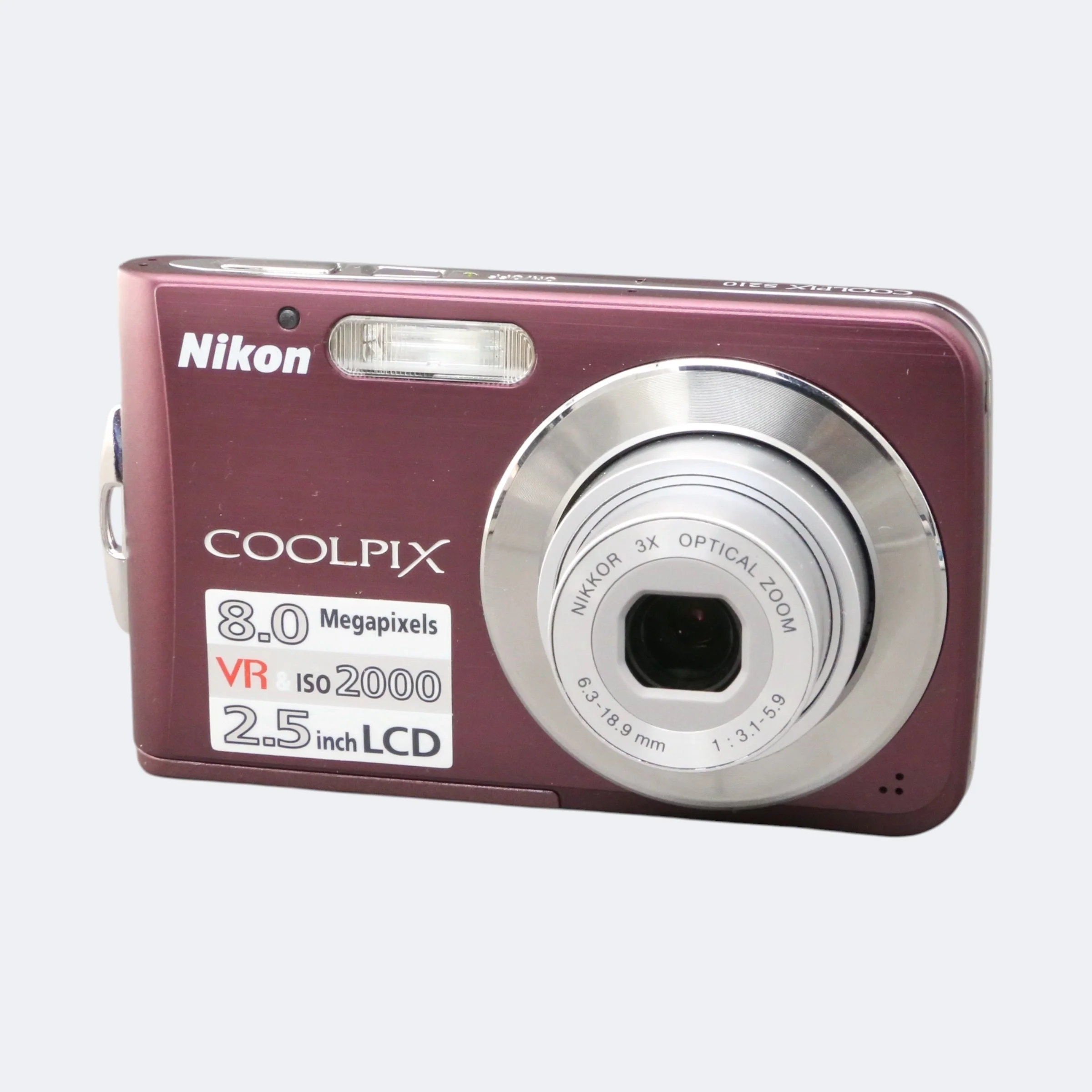 Slim late-2000s point-and-shoot with a clean metal design and classic CCD image quality. The CoolPix S210 is lightweight and easy to carry, making it great for everyday photos, travel, or vintage digital aesthetics.