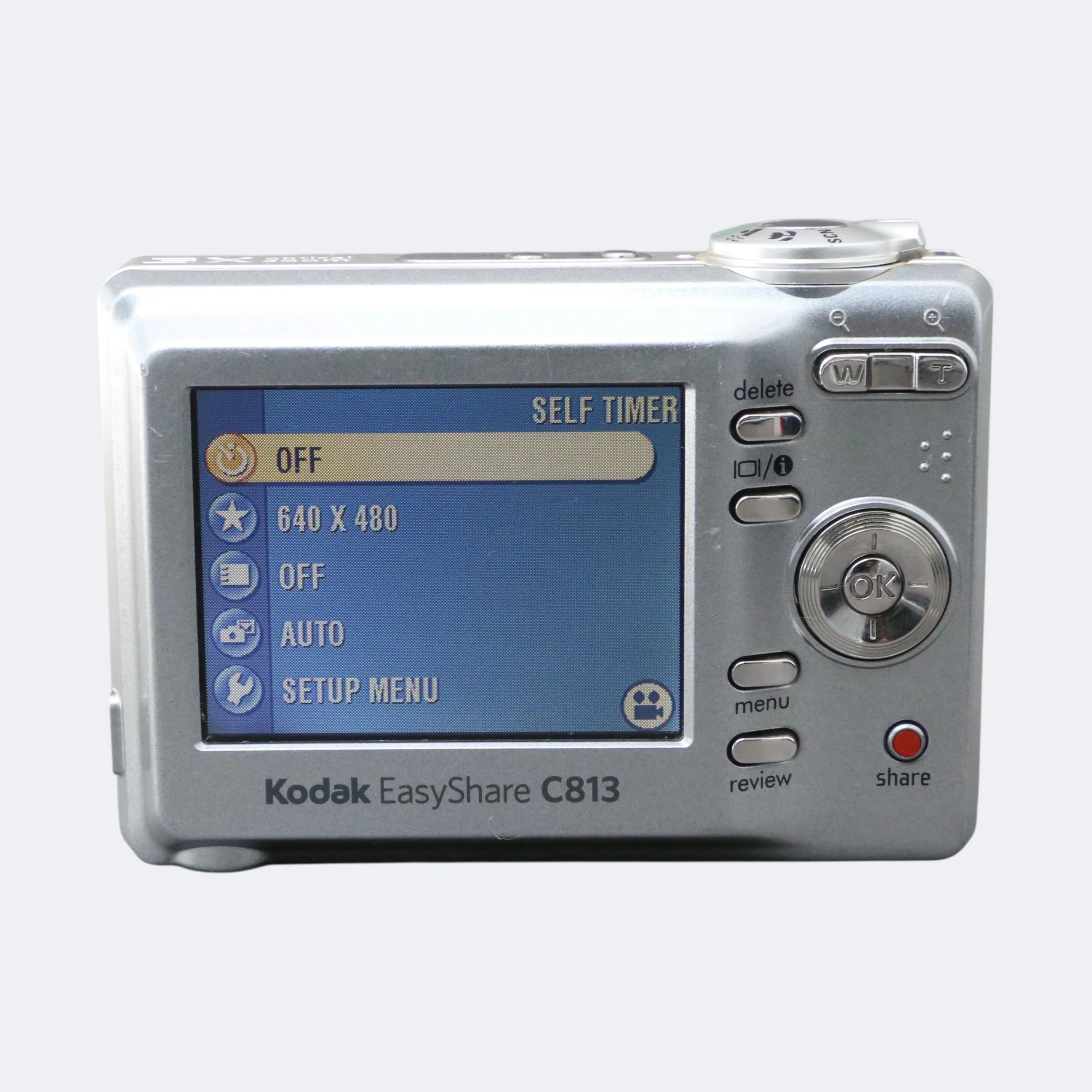 A straightforward compact from 2007, the Kodak EasyShare C813 delivers an 8MP sensor, 3× optical zoom, and simple controls in a lightweight body. Designed for everyday snapshots, it’s easy to use and a nice example of late-2000s budget digital cameras.