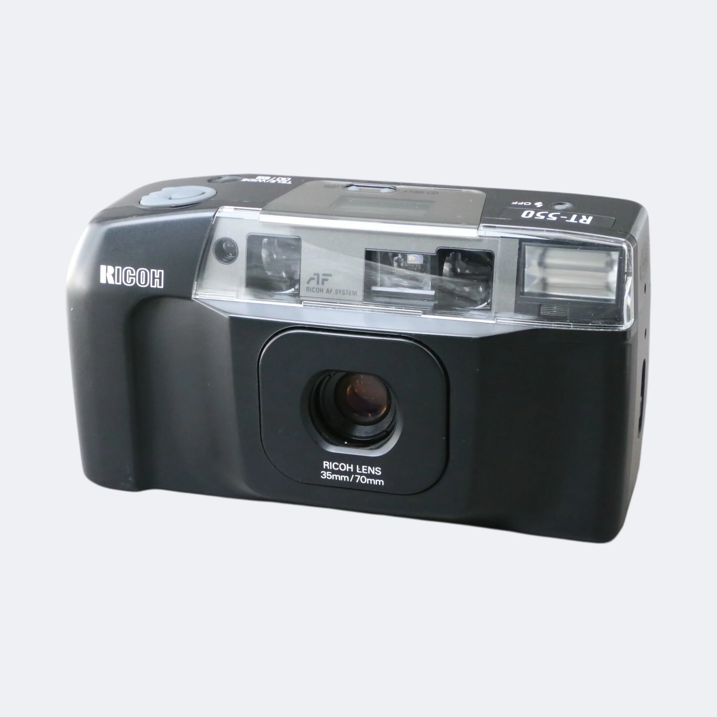 A simple, reliable point-and-shoot from the 1990s, the Ricoh RT-550 offers fully automatic operation in a compact, lightweight body. With a sharp fixed lens, built-in flash, and easy film loading, it’s ideal for beginners or anyone wanting a no-fuss film camera.