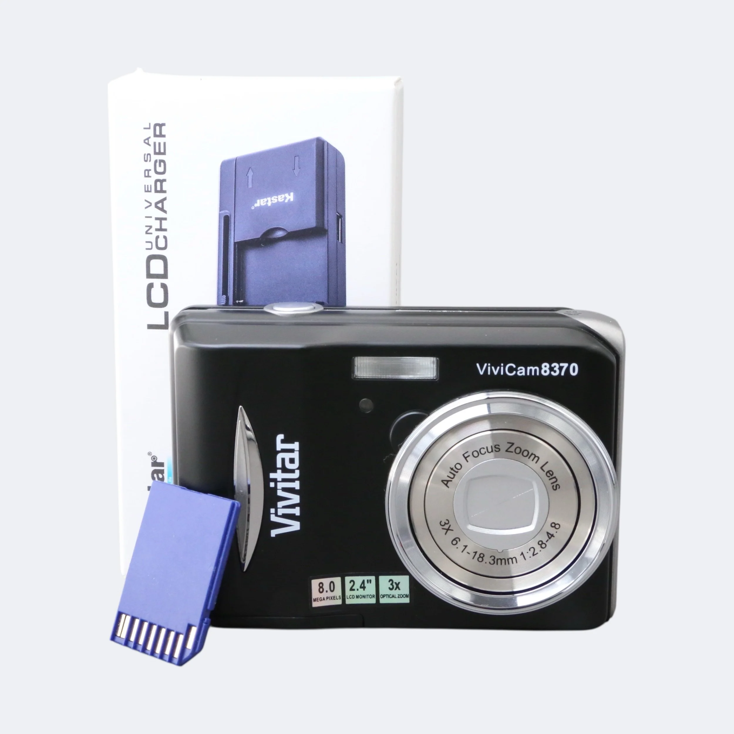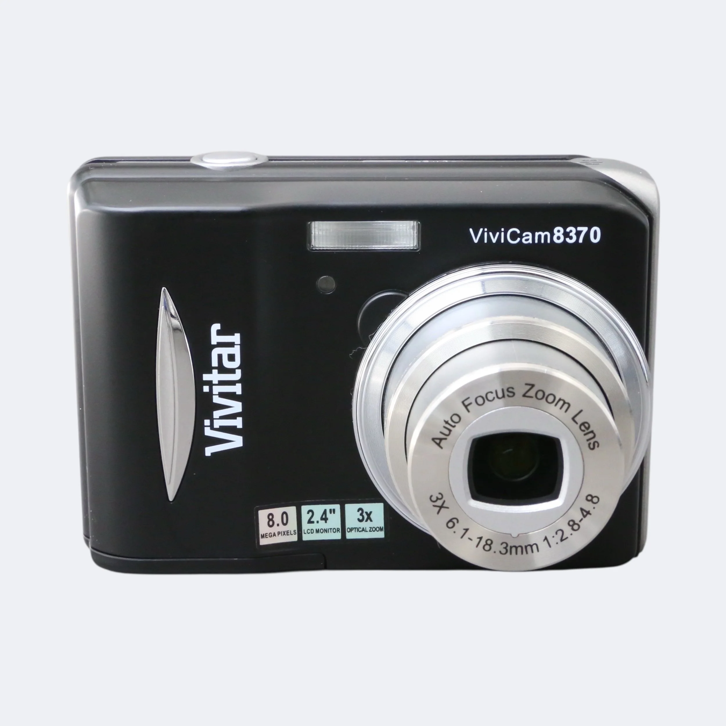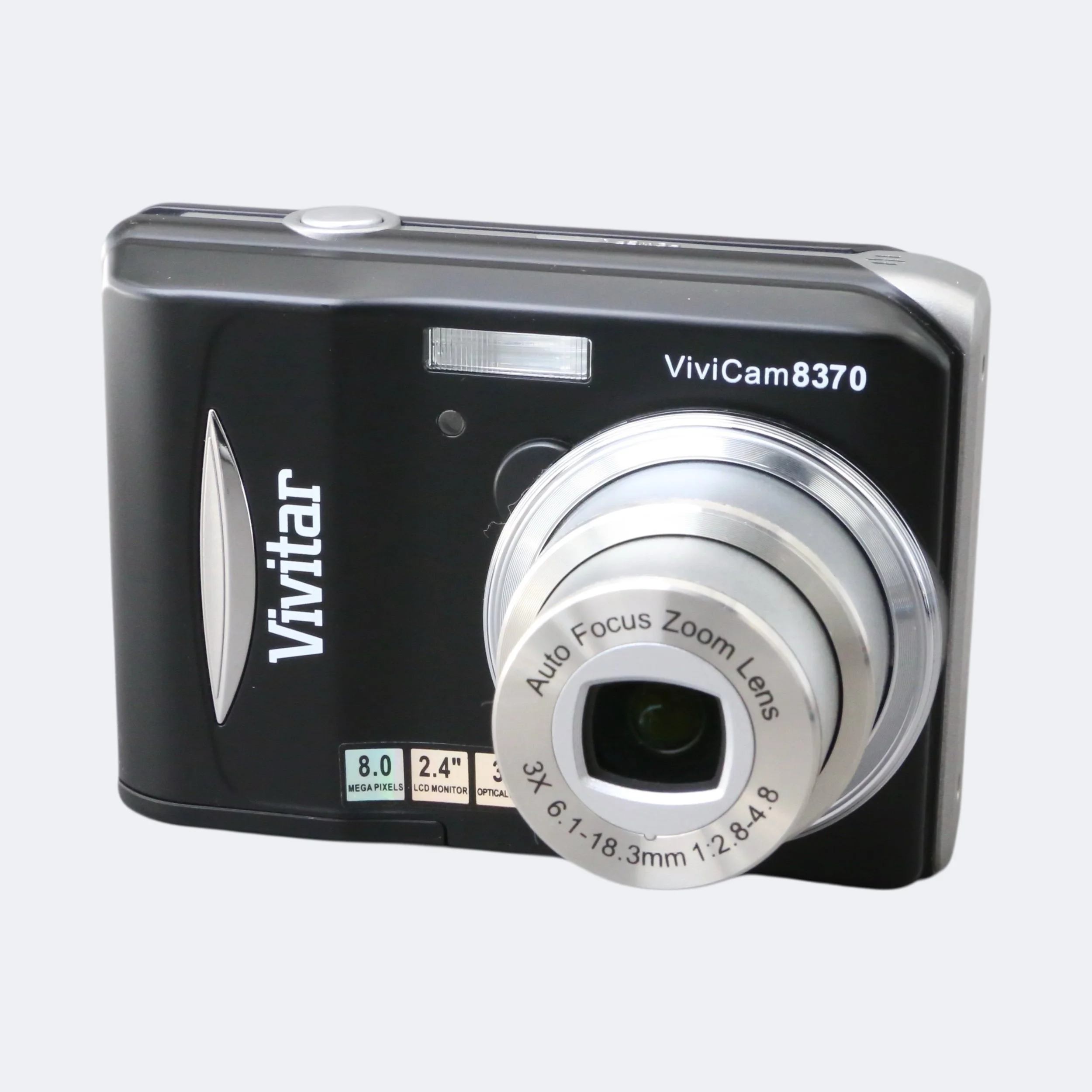 A simple, budget-friendly compact from the late 2000s, the Vivitar ViviCam 8370 offers an 8MP sensor, 3× digital zoom, and a lightweight plastic body. It’s easy to use and ideal as a basic everyday camera or a fun retro digital for collectors.