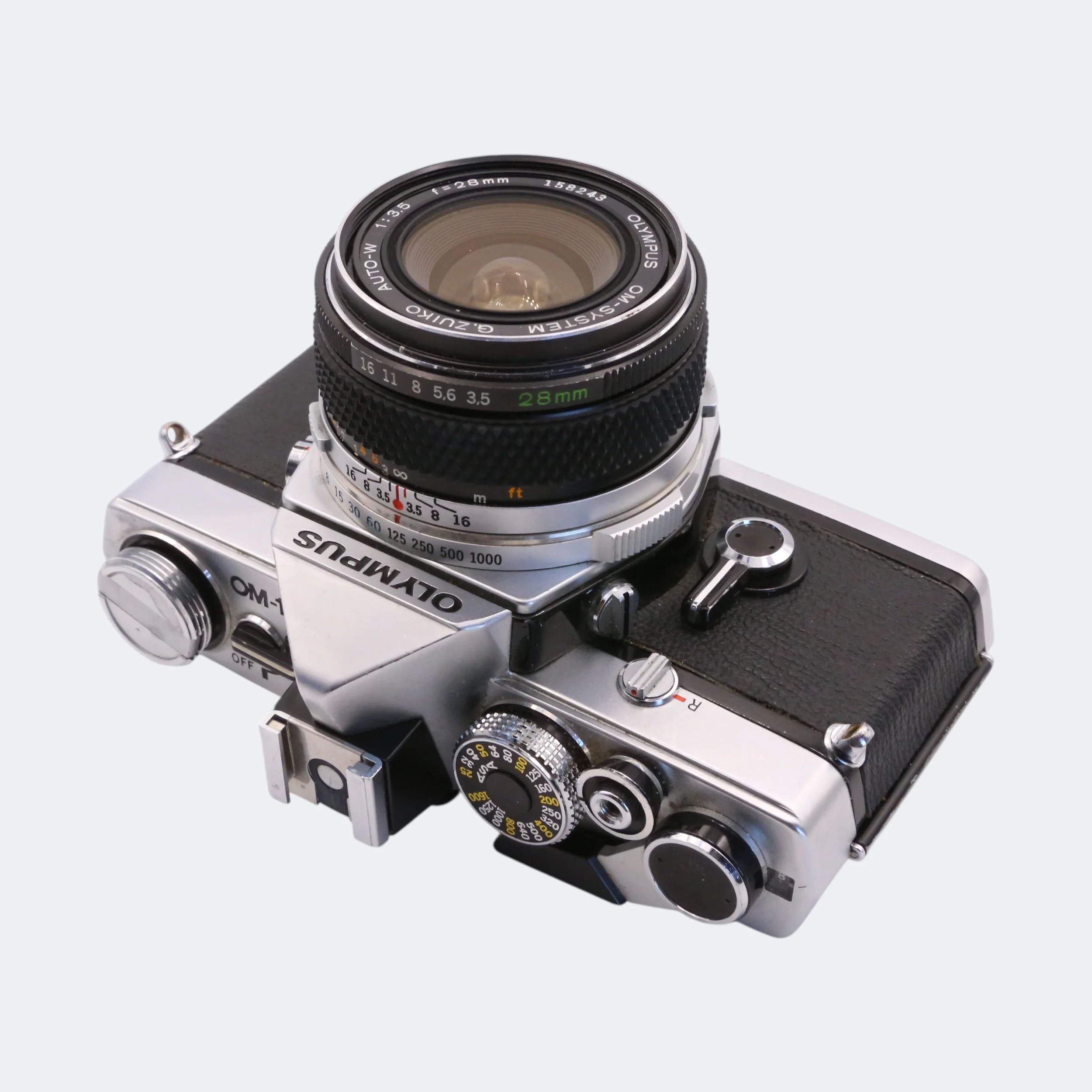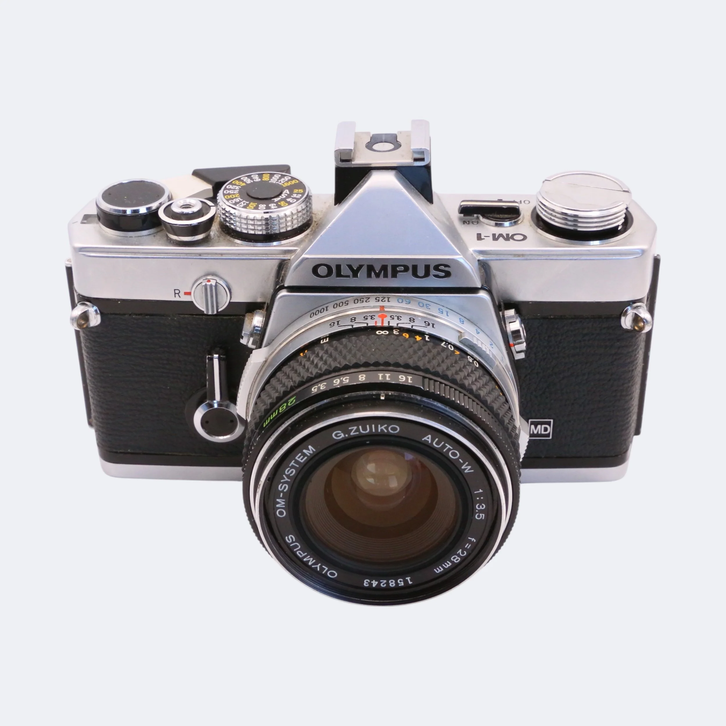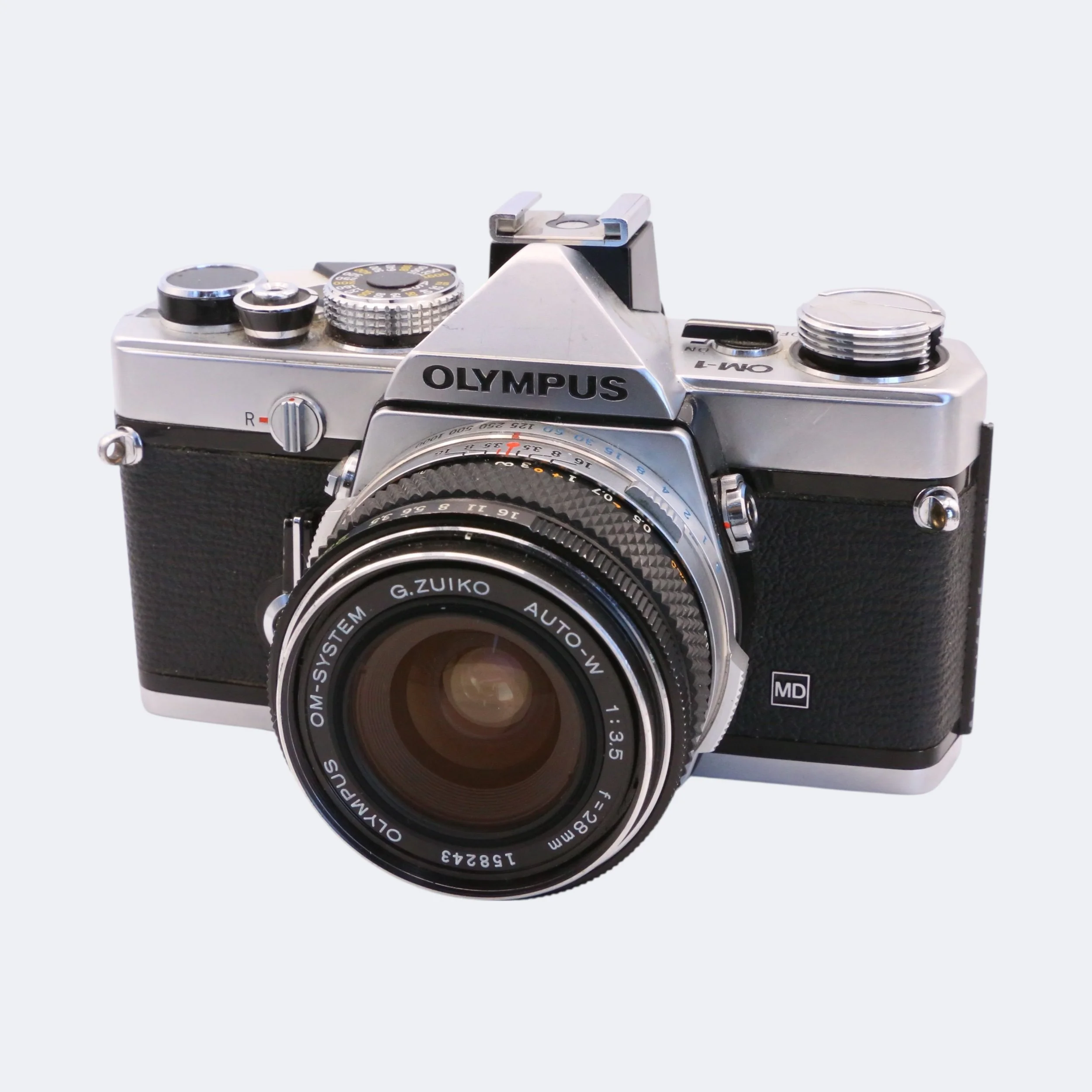 A legendary mechanical SLR from the 1970s, the Olympus OM-1 is celebrated for its compact size, quiet shutter, and exceptional build. Paired with the sharp Olympus Zuiko 28mm f/3.5 lens, it’s a versatile setup ideal for street, travel, and landscape photography.