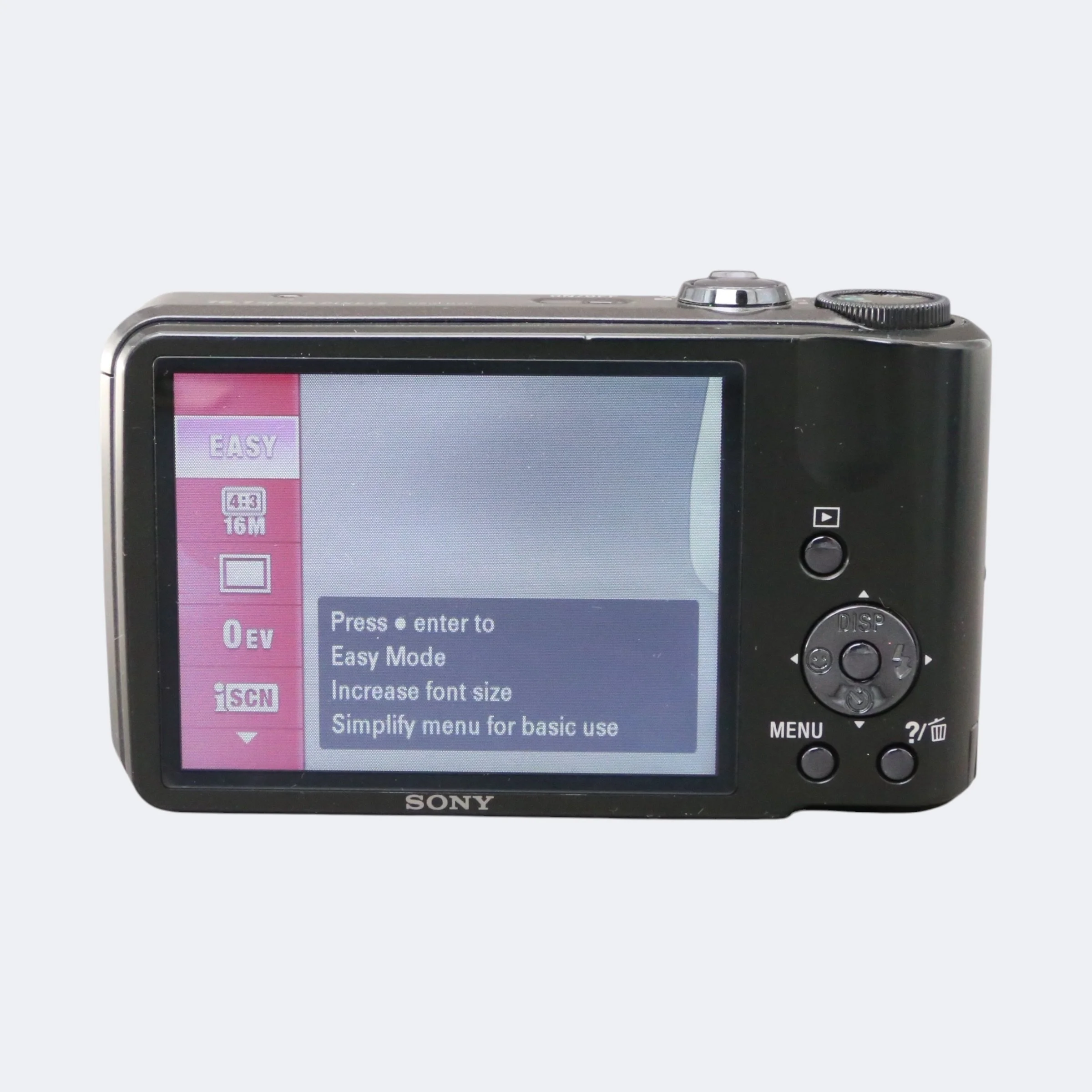 Compact long-zoom point-and-shoot with a clean early-2010s digital look. The DSC-H70 features a powerful zoom range, optical stabilization, and a high-resolution sensor in a slim, travel-friendly body. Great for everyday photos, trips, and versatile shooting.