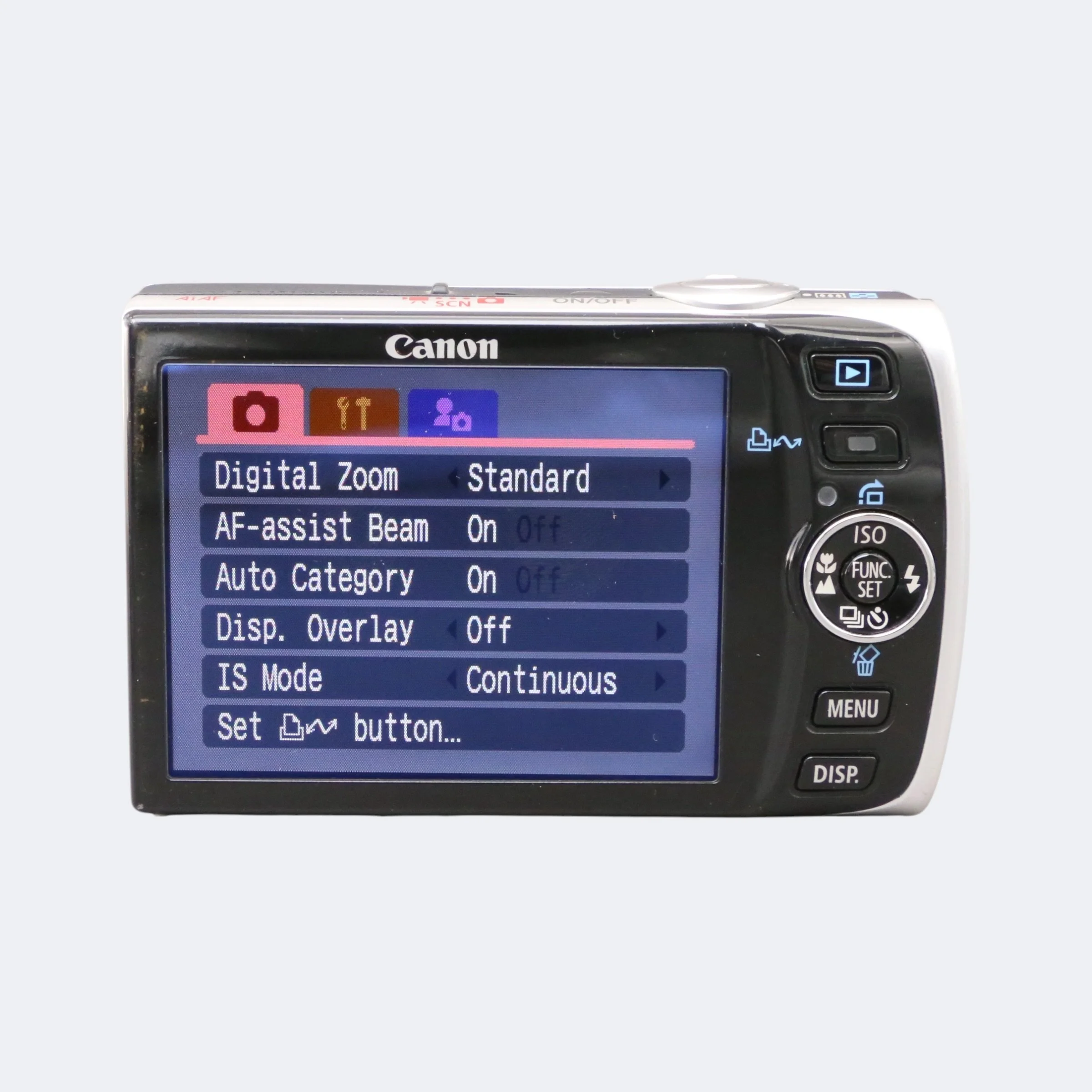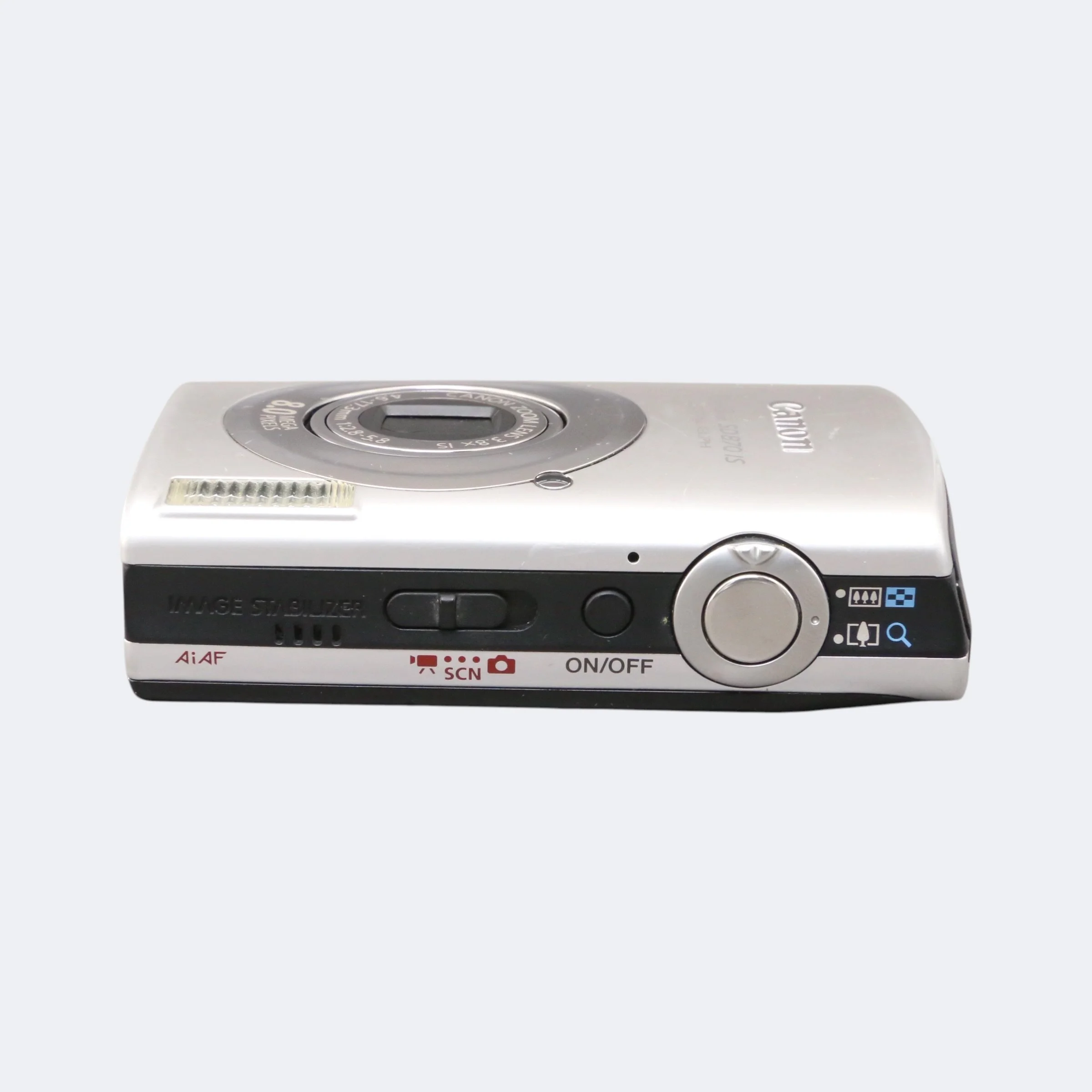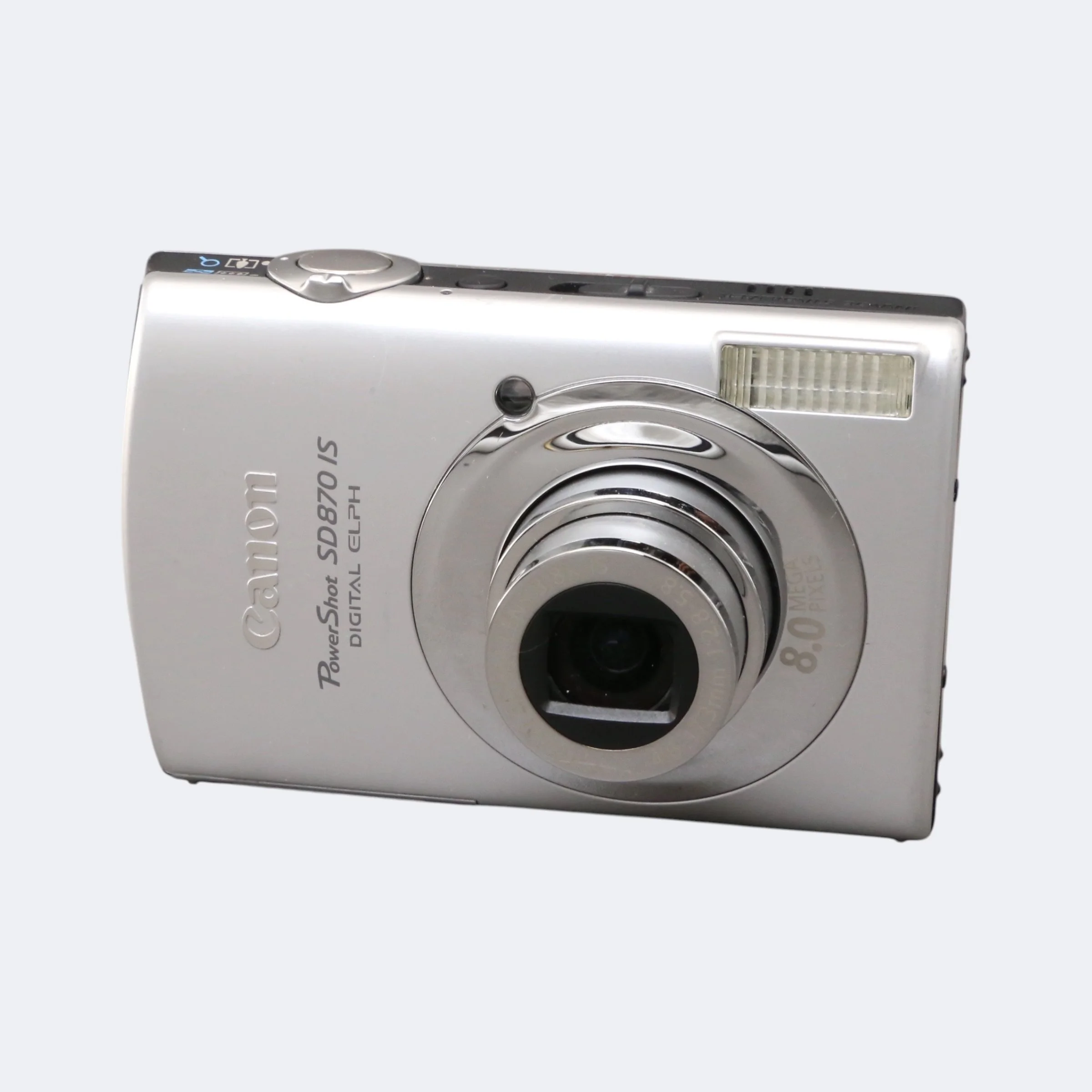 Compact late-2000s point-and-shoot with a premium metal build and classic Canon color rendering. The SD870 IS features a wide-angle lens (rare for this series), optical image stabilization, and a bright LCD in a slim, pocketable body. Great for everyday photos, travel, or vintage digital aesthetics.